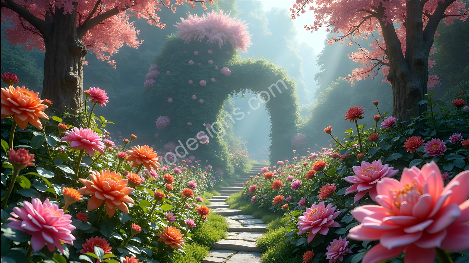 Enchanted Garden Path: Free High-Res Nature Wallpaper Download