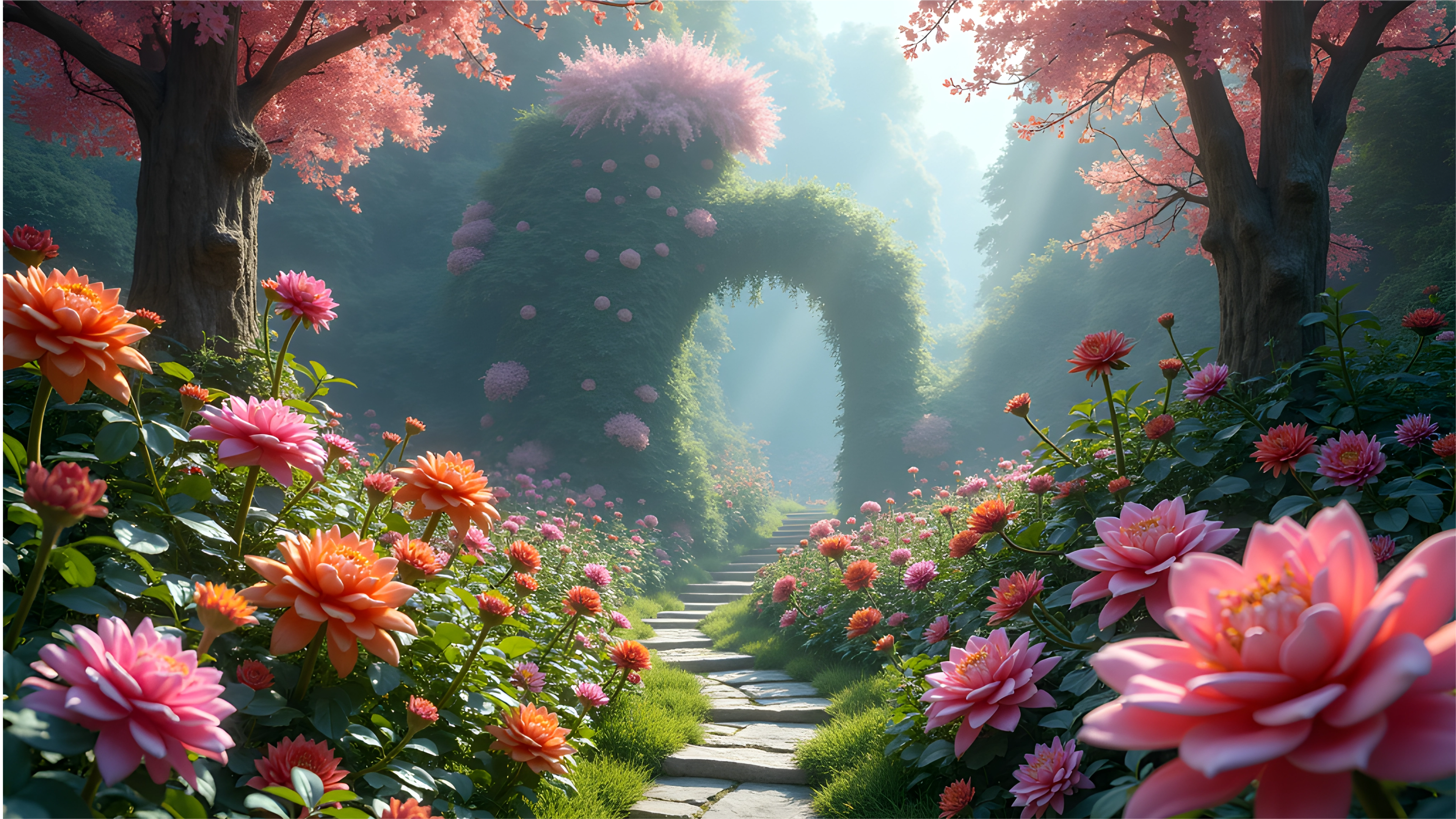 Enchanted Garden Path: Free High-Res Nature Wallpaper Download